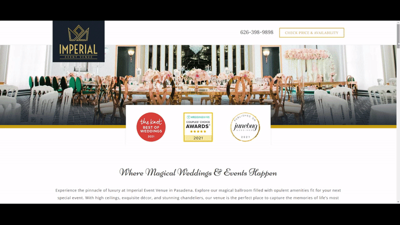 With a retargeting campaign, you can create display ads with beautiful images of the same ballroom along with an enticing caption to take action.