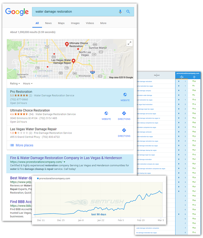 As a company that offers 24/7 emergency services, Pro Restoration company needed a high-positioned search presence in order to compete with the franchises that surround them and have compelling call-to-action messages, so that their potential customers could quickly find and reach them in the event of a disaster.